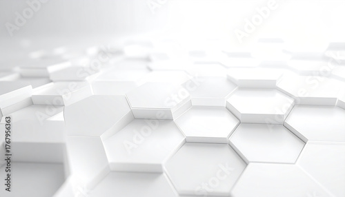 White hexagonal pattern with subtle ambient lighting and 3D geometric shapes creating modern abstract background with depth and texture in clean design