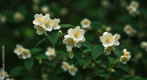 White Jasmine Blossoms and Lush Green Leaves