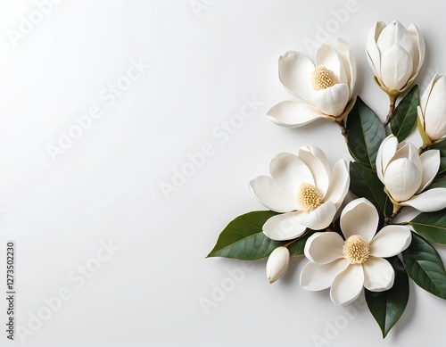 magnolia, white flower, flower, blossom, bloom, blooming, flower petals, spring, summer, nature, floral, botany, plant, plant, leaf, green leaf, white background, decoration, elegant, delicate, beauty, purity, serenity, spa, wedding, invitation, greeting card