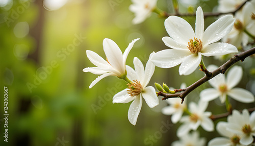 flower, magnolia, bloom, greenery, nature, spring, blossom, garden, delicate, flower petals, tree branch, beauty, fresh, botanical, vibrant, soft, floral, seasonal, flora, bright, peaceful, sunlight, growth, springtime, natural, calmness, white, environment, plant, wild, blooming, refreshing, relaxation, aesthetic, colours, freshness, harmony, uplifting, serene, colourful, bokeh, spring flower