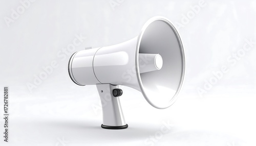 megaphone, white, loudspeaker, announcement, communication, sound, public, broadcast, speech, message, promotion, publicity, advertising, modern, three-dimensional, render, studio, light, background, isolated, object, graphic, design, product, technology
