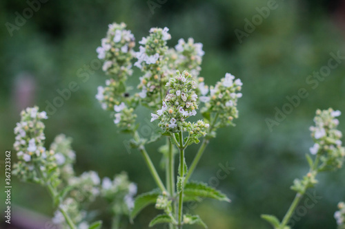 White melissa flower in the backyard