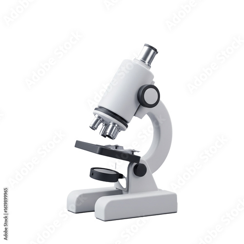 White Microscope Science Equipment Isolated on cutout PNG background