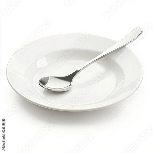 plate, spoon, white, dish, kitchen, dinnerware, tableware, dining, clean, minimalist, ceramic, silver, shiny, single, empty, culinary, eatery, food, meal, snack, modern, design, home, cook, serve, style, setting, crockery, object, utensil