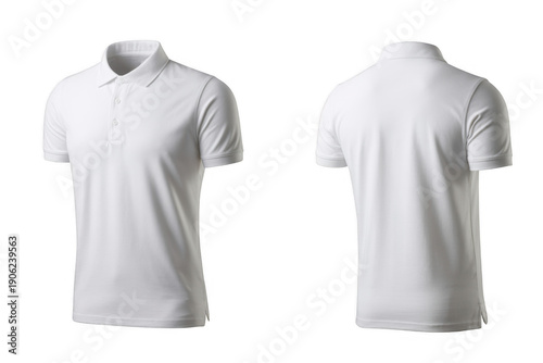 White polo shirt front and back view isolated on a transparent background