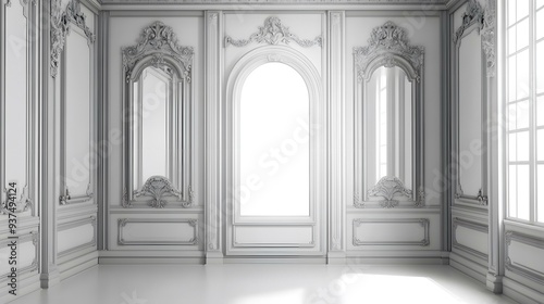 white, room, molding, ornate, window, wall, design, interior, classic, arch, pane, light, vintage, architecture, french, style, decor, luxury, elegant, decorative, empty, background, pattern, frame, detail, wood, art, minimal