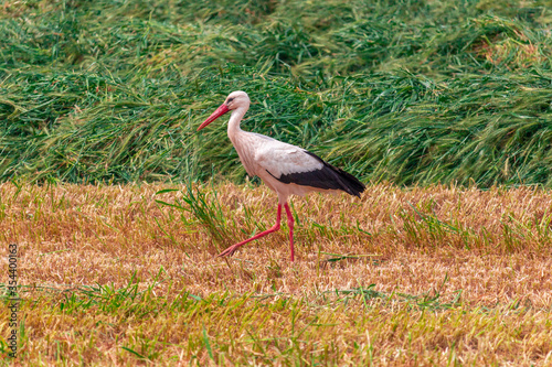 white stork in the grass