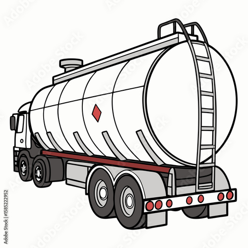 trailer, transportation, vehicle, industrial, white, grey, red, cargo, logistic, hauling, fuel, oil, water, chemical, highway, commercial vehicle, heavy duty, graphic, illustration, clean, modern, simple, freight, delivery, truck, wheel, ladder