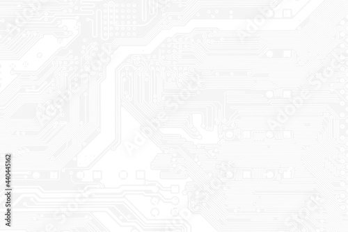 White texture background of printed circuit board. Computer technology background. Information tech. Space for text. Gray scale pcb background.