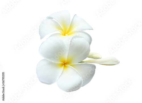 White tropical flowers frangipani (plumeria) isolated on white background with clipping path..