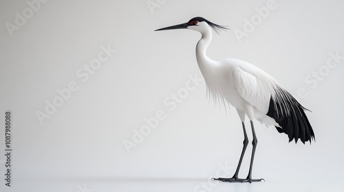 bird, heron, white, black, feather, wildlife, nature, animal, beak, wing, tail, leg, standing, pose, photo, studio, background, isolated, fauna, avian, zoology, ornithology, wild, wading, water, long, elegant, graceful, beautiful, captivating, portrait, single, close, up