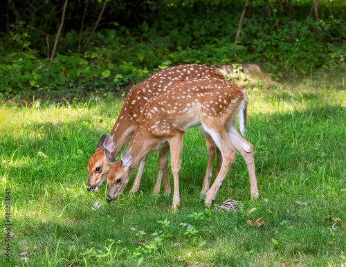 white tail, residential, backyard, neighbourhood, nature, wildlife, outdoors, grass, tree, pest, nuisance, home, house, young, baby, bambi, summer, seasonal, eating