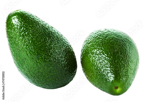 Whole Avocado isolated on white background. Fresh green Avocado