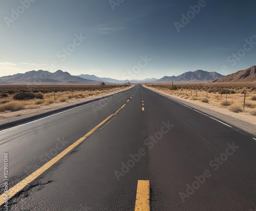 Wide shot of a long asphalt road stretching into the distance, , landscape