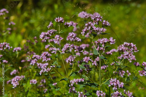 Wild origanum blooming in forest