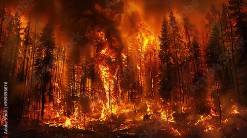 Wildfires or forest fire burning with a lot of smoke. AI generated illustration