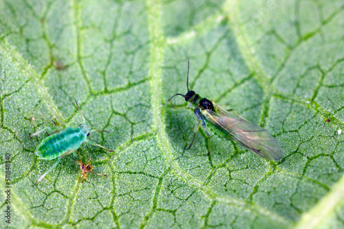 Willow carrot aphid, Cavariella aegopodii on a leaf.