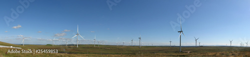 Wind farm panorama with blue sky