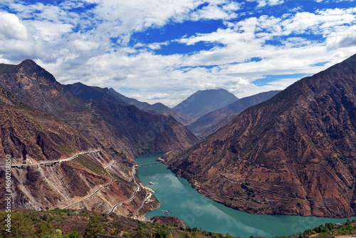 winding road, mountain road, river, blue skies, nature, landscape, scenic, outdoors, travel, journey, adventure, water, hill, green, tree, horizon, sky, cloud, exploration, wanderlust, pathway, environment, tranquil, serene, countryside, idylli, rural, scenic route, vista, excursion, background, panoramic, daylight, destination, trekking, mountain summit, expedition