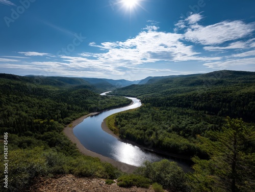 winding, river, forest, vale, bright, blue, landscape, nature, water, sunlight, vegetation, serene, scenic, cloudy, environment, calmness, sky, hill, curve, peaceful, earth, tranquil, green, terrain, hillside, day, journey, natural, beauty, blue skies, bend, summer, vibrant, remote, wilderness, flowing, ecology, fresh air, picturesque, panoramic, idylli, river bank