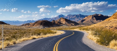 road, desert, mountain, winding, sky, blue, sunny, landscape, travel, adventure, scenic, nature, vale, dry, brown, tan, vegetation, highway, asphalt, curve, empty, rocky, cloud, open, huge, dryness, mountainous, outdoors, exploration, freedom, journey