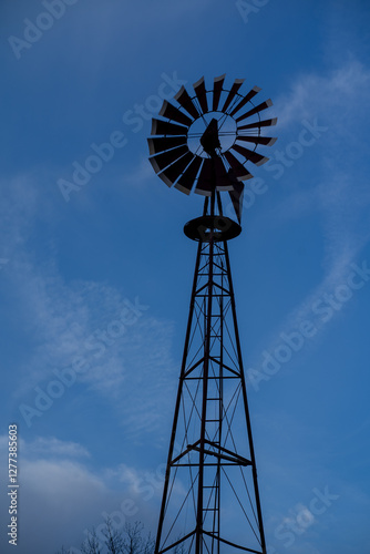 windmill, wind, farm, sky, agriculture, mill, energy, country, vintage, blue, cloud, metal