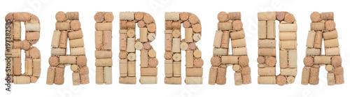 Wine region of Portugal Bairrada made of wine corks Isolated on white background