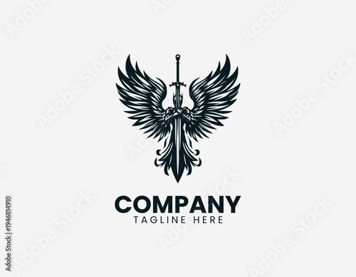 Winged warrior angel holding sword in clean modern fantasy guardian vector illustration style