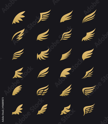 Wings. Vector Set of wing design elements. Vector illustration. Design for logo, tattoo and luxury brand identity