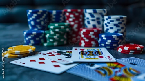 Winning Hand in Poker: A winning poker hand laid out on the table, surrounded by chips and cards.