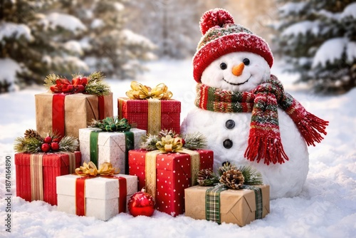 winter holiday, snowman, christmas gift, festive season, gift box, playful, winterly, holiday spirit, christmas decoration, celebration, christmas gift