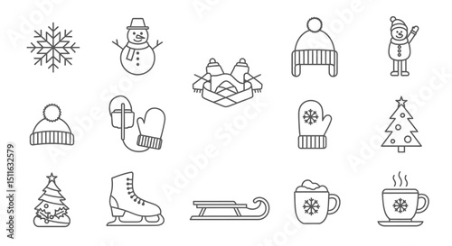 winter icons, set of line icons, icon sheet