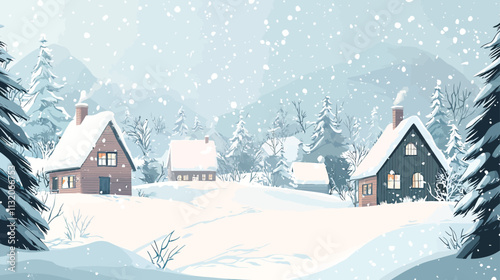 winter landscape with houses and trees