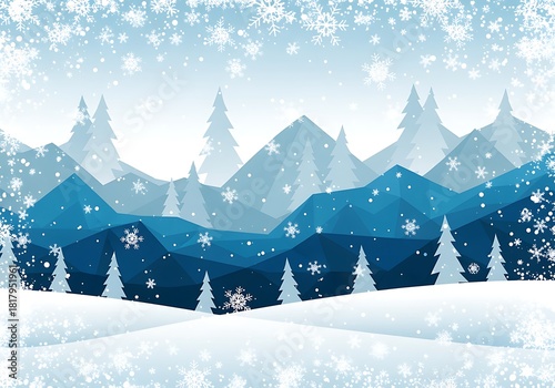 mountain, snow, tree, winter, landscape, falling, polygon, scenery, geometric, conifer, artwork, snowy, background, nature, cold, season, flake, graphic, design, illustration, scene, white, blue, peak, hill, frost, holiday, seasonal, art, december, snowfall, weather, terrain, surface, frosty, pattern, christmas, texture, style, abstract, decorative, cover, card, element, template, image