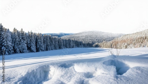 Winter snow landscape isolated on transparent background