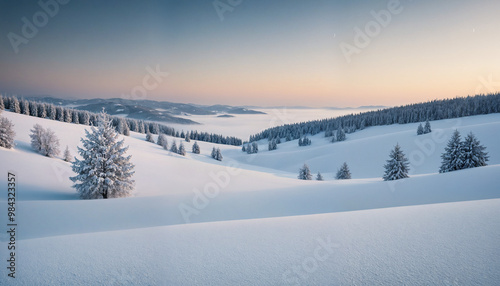 Wintery Season Landscape white fields and ice, nature and forest stock photo