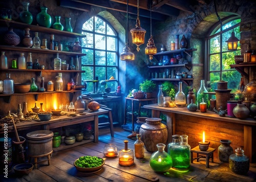 sorcerer, workshop, magic, halloween, skittish, cauldron, bottle, ghost, night, fall, creepy, costume, shadow, glow, haunted, book, witchcraft, lantern, october, eerie, broom, hat, liquid, flask, laboratory, light, pumpkin, spirit, steam, dark, mystic, herb, moon, enchant, twilight, fantasy, ampoule