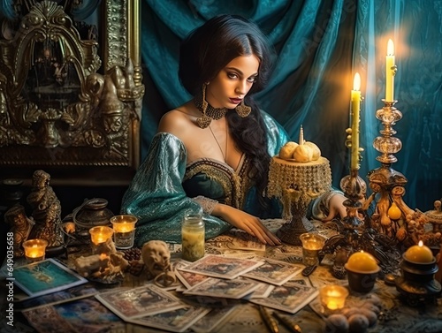 Woman fortunetelling on tarot cards