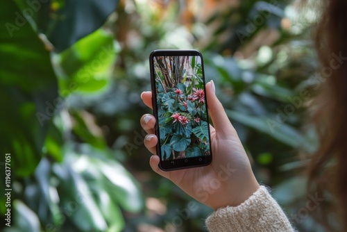 Woman hand holding modern smatphone mockup on white, Generative AI