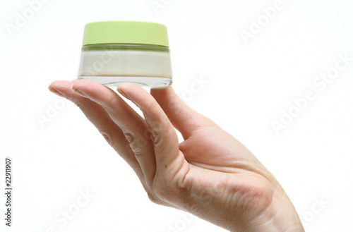 woman, girl, hold, hand, cream, finger, treatment, container, skin, human, cosmetic, body, clean, lotion, massage, pot, care, moisture, toiletry, achieving, fresh, smell, product, isolated, remedy, pure, green