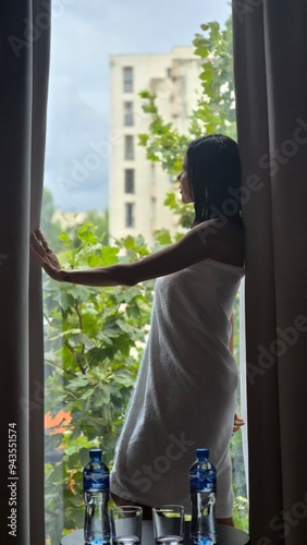 woman, window, people, home, looking, person, beauty, business, standing, morning, indoor, phone, open, day