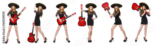 Woman in sombrero hat with guitar