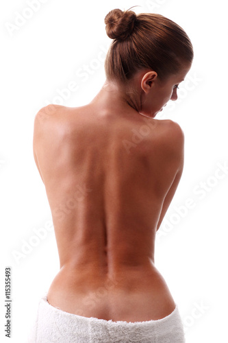 body, white, towel, spa, woman, isolated, treatment, beauty, naked, female, beautiful, slim, colours, skin, torso, fashion, portrait, young, waist, back