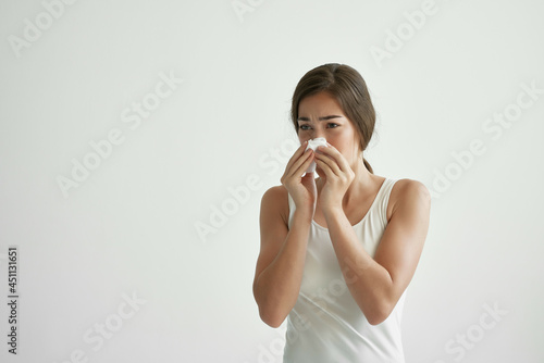 allergy, ill, nose, woman, flu, tissue, blowing, caucasian, young, disease, disease, flu, pain, sick, disease, symptom, unwell, virus, allergic, health, person, sneeze, unhealthy, care, female, handkerchief, paper, portrait, studio, white, girl, hand, napkin, beautiful, cold, cough, feeling, fever, cephalalgia, infection, lady, unhappy, sneezing, hair, isolated, attractive, spring, ache, 1, space