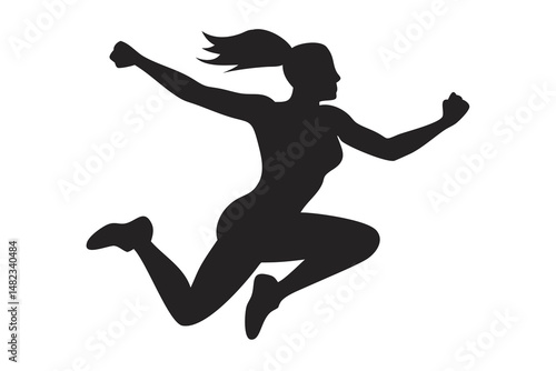 Woman Jumping Silhouette, Dynamic Action Pose Illustration, Empowerment and Joy Graphic, Cut Out