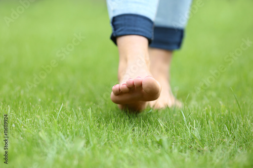 Woman legs on green grass