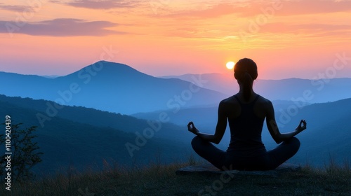 woman, mountain, sunrise, sunset, yoga, meditation, peace, serenity, calm, tranquil, nature, outdoors, landscape, silhouette, spiritual, mindfulness, zen, harmony, balance, stillness, quiet, solitude, contemplation, inner, peacefulness, calmness, relaxation, breathing, sharpened, awareness, present, moment, journey, growth, self, discovery, connection, earth, sky, cloud, sun, light, hope