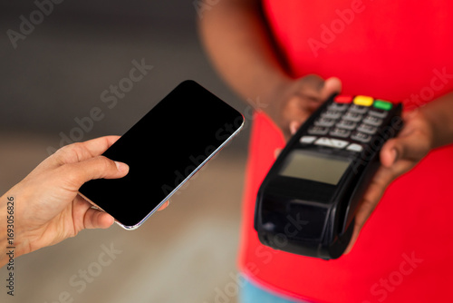 delivery, african american, woman, pos, mobile, payment, phone, man, terminal, digital, shopping, money, black, smartphone, online, home, electronic, shipment, pay, consumer, purchase, courier, device, business, modern, store, mobile phone, machine, service, buy, reader, finance, banking, retail, cashless, filed, cashier, order, transfer, technology, sale, atm, transaction, topview, checkout, swipe