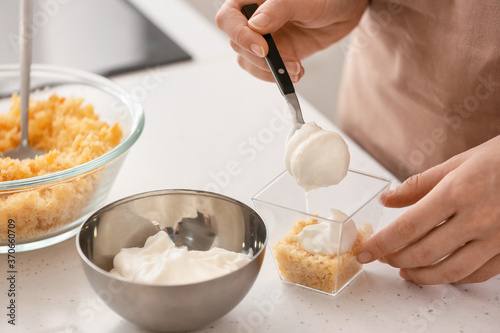 background, bake, birthday, bowl, cake, calorie, celebration, closeup, colours, confection, confectioner, confectionery, cooking, cream, creative, crumble, culinary, cupcake, delicious, dessert, female, food, fresh, girl, glasses, hand, homemade, ingredient, jar, kitchen, layered, layer, making, modern, people, person, preparing, receipe, sponge, spoon, sugar, sweet, table, tasty, treat, trend, white, woman
