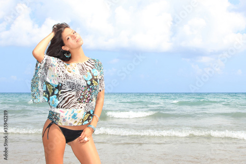 attractive, sarong, beach, beauty, bikini, blue, body, cute, female, full, girl, greece, happy, healthy, hot, ocean, pacific, meditation, relaxing, sea, sensual, model, sexy, sky, summer, travel, tropical, vacation, water, greek, well-being, woman